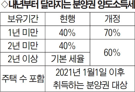 내년 취득 분양권 '주택수' 포함 1년 미만 보유 시 양도세 70%