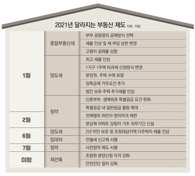 21일 부동산 정보 플랫폼 ‘직방’에 따르면 새해에는 시장 안정화를 위해 세금과 청약, 정비사업 등 부동산 관련 다양한 분야에서 변경된 제도들이 시행을 앞두고 있다.