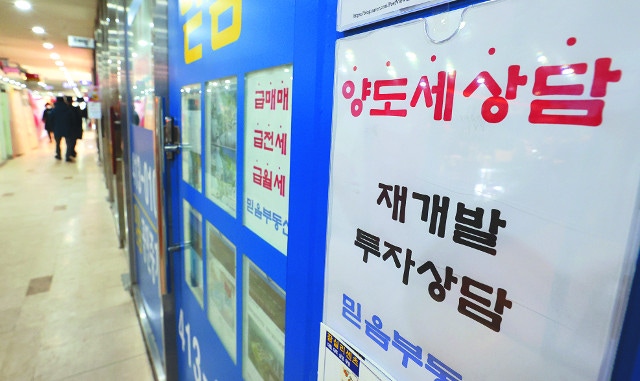 당정이 올 6월부터 적용되는 조정대상지역 다주택자에 대한 양도세 중과 정책을 완화하는 방안을 검토하는 것으로 알려졌다. 10일 서울 송파구 한 부동산중개업소 입구에 ‘양도세 상담’이라 붙어 있다. 연합뉴스
