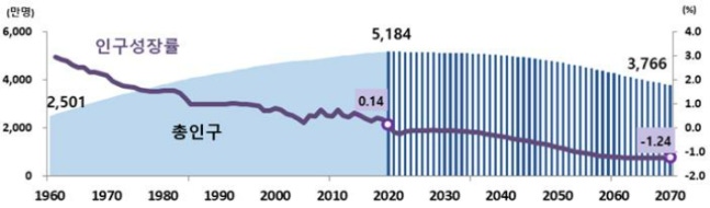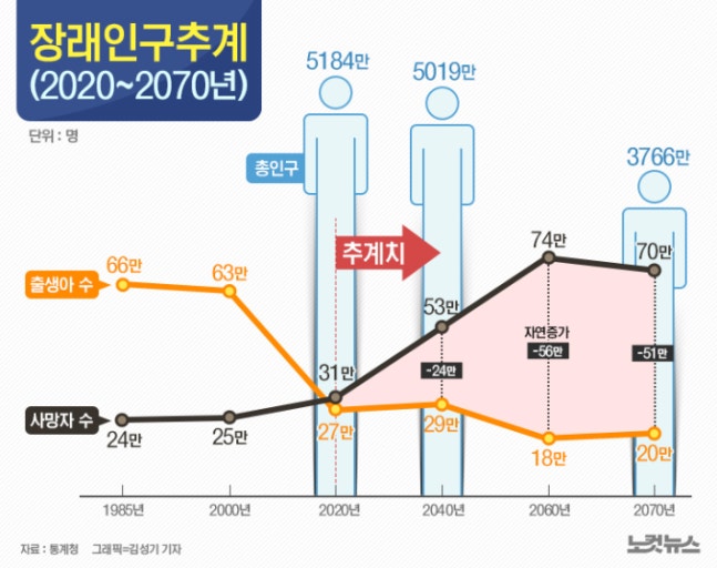 내리막길만 남은 대한민국 인구…2070년 3천만명대로 추락한다