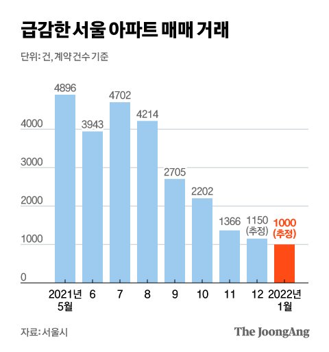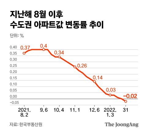 한국은행이 지난해 8월 이후 세 차례 기준금리 인상(0.50→1.25%)을 단행한 이후 부동산 시장은 급속도로 얼어붙었다. '집값 고점' 인식과 강력한 대출 규제 등이 맞물리며 역대급 거래절벽 현상이 이어지고 있다. 국토교통부에 따르면 지난해 12월 전국 주택 거래는 2008년 이후 가장 적었다. 매물이 쌓이고 간간이 급매물만 거래되면서 집값도 하락세다. 지난주 수도권 주간 아파트값 상승률은 -0.02%를 기록, 2019년 7월 이후 2년 4개월여 만에 하락 전환했다.