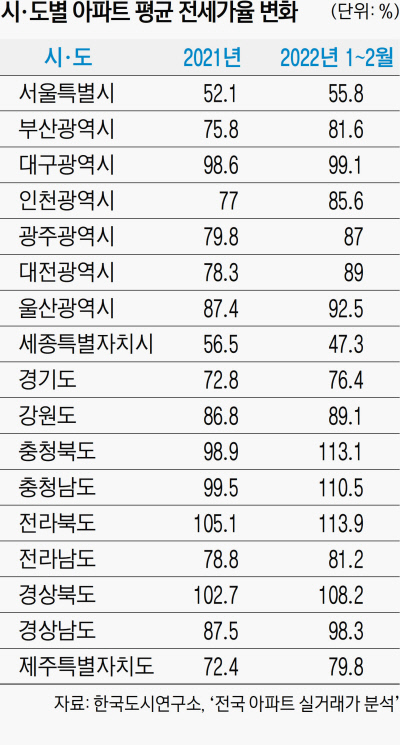 전세가율, 전국적 상승세…올해 ‘깡통전세’ 위험 더 커질 듯