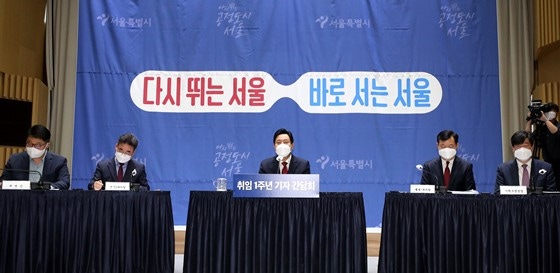 오 시장은 지난 12일 서울시청에서 취임 1주년 기자간담회를 열고 “앞으로 새 정부 출범 이후 협조 관계를 이뤄가는 과정에서 부동산 가격을 자극하는 일이 없도록 최대한 정교하게 접근하겠다”며 “서울시는 주택공급보다 가격안정이 중요하다는 기조를 유지할 것”이라고 말했다.
