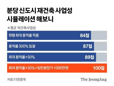 1기 신도시 용적률 300% 땐 대박? 분당 재건축 사업성 84→87점