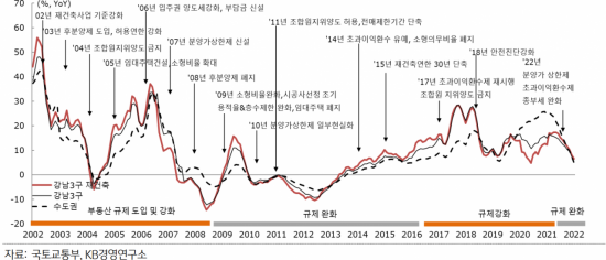 재건축 관련 제도 변화에 따른 아파트 가격 추이 <자료:KB경영연구소>