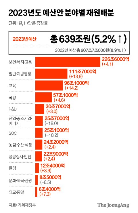 주거복지 분야에는 총 36조원이 편성됐다. 공공임대주택 예산은 대폭 줄어들고, 청년원가주택, 역세권첫집 등 공공분양 예산은 늘어났다. 건설형 공공임대인 영구·국민·행복주택 출자 예산은 전년 대비 각각 41.4%(1267억원), 35.6%(1209억원), 37.5%(4107억원) 감소했다.
