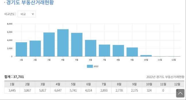 도 관계자는 "올해들어 아파트 거래량이 전년보다 많이 줄었다"며 "금리 인상과 경제 침체 등의 요인이 영향을 미친 것으로 보인다"고 말했다.
