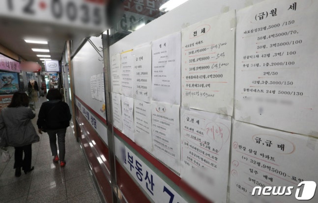 19일 서울 시내의 한 건물에 위치한 공인중개사 사무실 모습.