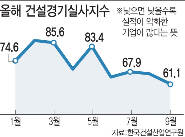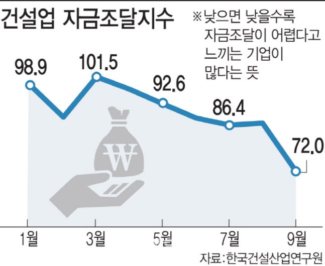 중견·중소건설사가 주축이 된 대한주택건설협회 관계자는 “중소 건설사는 상대적으로 제2금융권을 많이 이용해왔는데 이젠 시공능력평가 100위 이상 건설사에만 대출을 해주고 있다”며 “정상적으로 추진 중이던 사업장도 중단되는 곳이 늘고 있다”고 말했다.