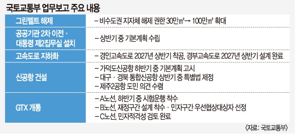 앞으로 비수도권의 개발제한구역(그린벨트)을 해제할 때 지방자치단체의 권한이 확대된다. 수도권 광역급행철도(GTX) A노선은 올해 상반기 시험운행을 거쳐 내년 초에 수서~동탄 구간부터 개통이 시작된다.
