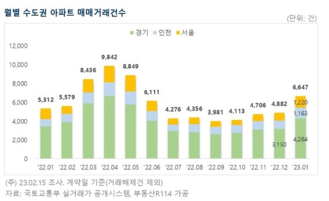 다만 최근 3년간(2020~2022년) 수도권 1월 월평균 거래량(2만2182건)에는 한참 못 미치는 수준이어서 거래회복세로 이어지고 있다 판단하기는 어렵다.