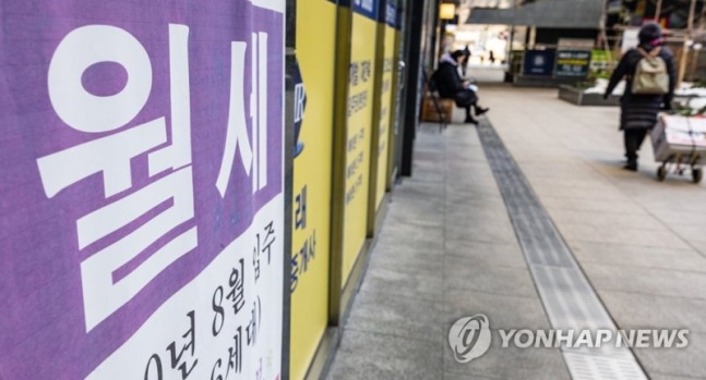 서울 서대문구 한 부동산 중개업소에 월세를 안내하는 현수막이 붙어 있다. 부동산 정보제공업체 경제만랩이 서울부동산정보광장을 분석한 결과, 지난해 서울 주택 월세 거래가 역대 최다인 것으로 조사됐다. 서울 주택 임대차 시장에서 월세가 차지하는 비중은 49.2%를 기록, 2018년부터 4년 연속 증가세를 이어 갔다. 월세 거래 증가는 금리 인상의 영향으로 대출을 줄이려는 심리에 기반한 것으로 보인다.