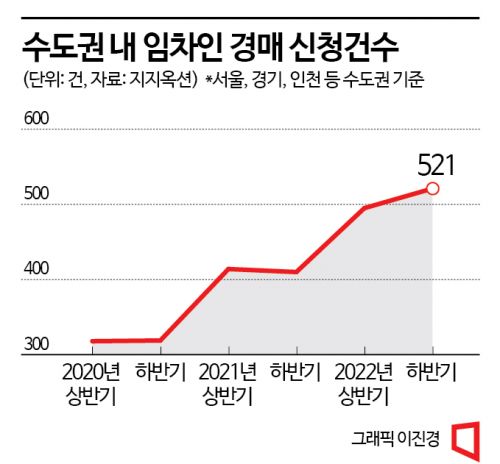 실제로 세입자가 직접 신청한 강제 경매 사례는 크게 늘고 있다. 법원경매 전문기업인 지지옥션에 따르면 지난해 하반기 서울·경기·인천 등 수도권 지역에서 임차인이 집주인을 상대로 경매를 신청한 규모는 총 521건으로 나타났다. 이는 2020년 하반기(319건), 2021년 하반기(410건)에 이어 매년 100건 넘게 증가한 수치다.
